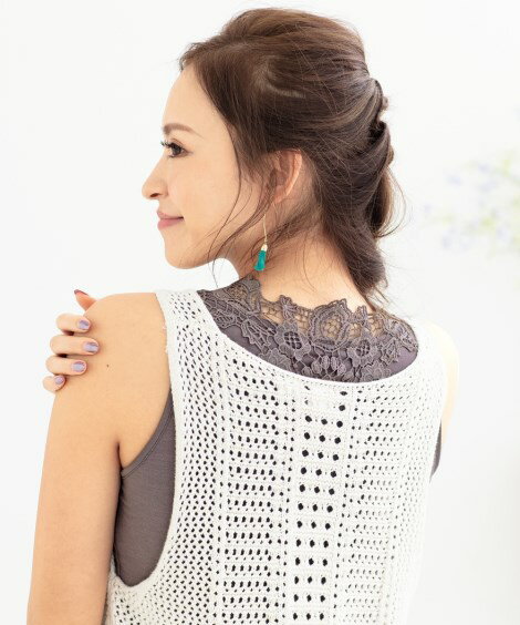 背中のあいた夏アウターとのレイヤードはもちろん、ハヤリの抜き衿アウターと合わせてチラリとのぞかせてもおしゃれ。