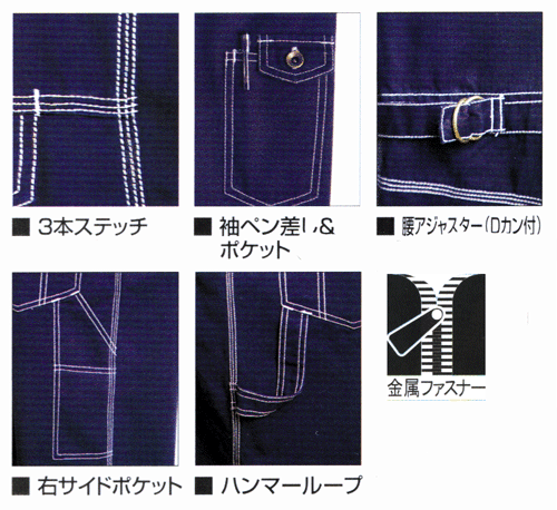 CATーKIDS 517S ツナギ(春・夏・秋・冬) ■素材 オックス/綿100% ■カラー ネイビー ■ワンウォッシュ加工 ■袖口隠しドットボタン ■3本ステッチ ■袖ペンさし&ポケット ■ハンマーループ ■右サイドポケット サイズ 背丈 肩幅 袖丈 胸囲 腰廻 脇丈 股下 100 30 30 34 71 68 62 41 110 32 32 37 75 70 68 46 120 34 34 40 79 72 74 51 130 36 35 43 83 75 80 56 140 38 38 46 87 79 86 61 150 40 40 49 91 82 92 66